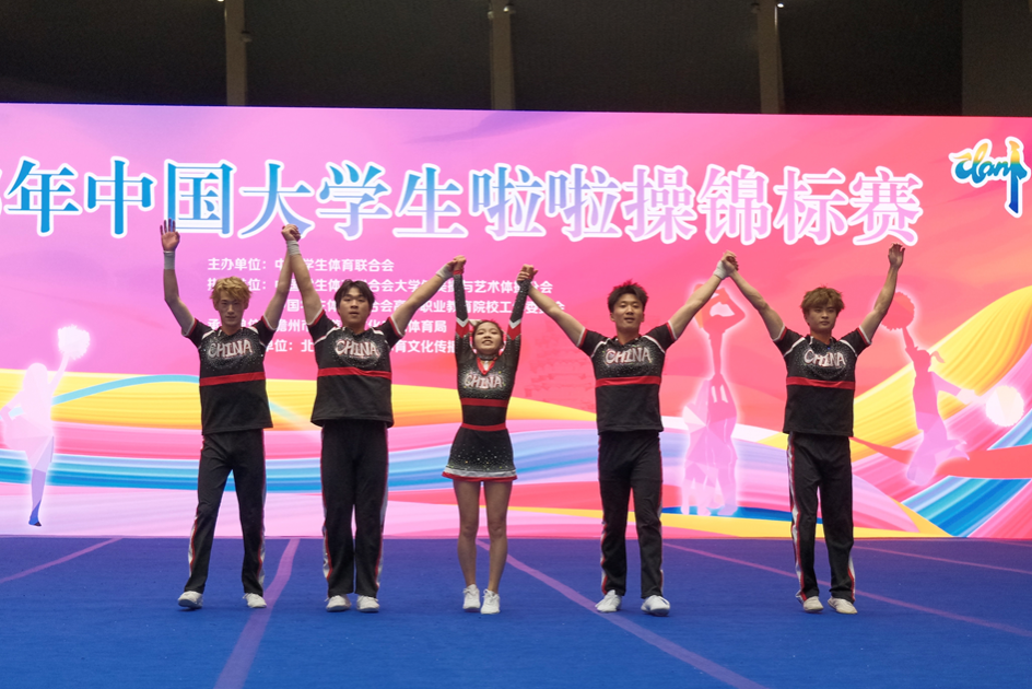 获丙B组(高水平组)规定动作集体混合技巧啦啦操(五级)冠军